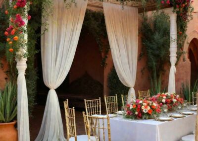 Nous sommes Book-in-Marrakech. Notre équipe organise des mariages de luxe et des événements privés à Marrakech, au Maroc. Des couples du monde entier viennent célébrer leur amour au cœur de la richesse et de la diversité culturelle de notre pays. Chez Book-in-Marrakech, nous concevons, stylisons, produisons et planifions votre événement. Dès le début de votre projet, nous sommes l’unique équipe dont vous avez besoin pour dépasser vos attentes.